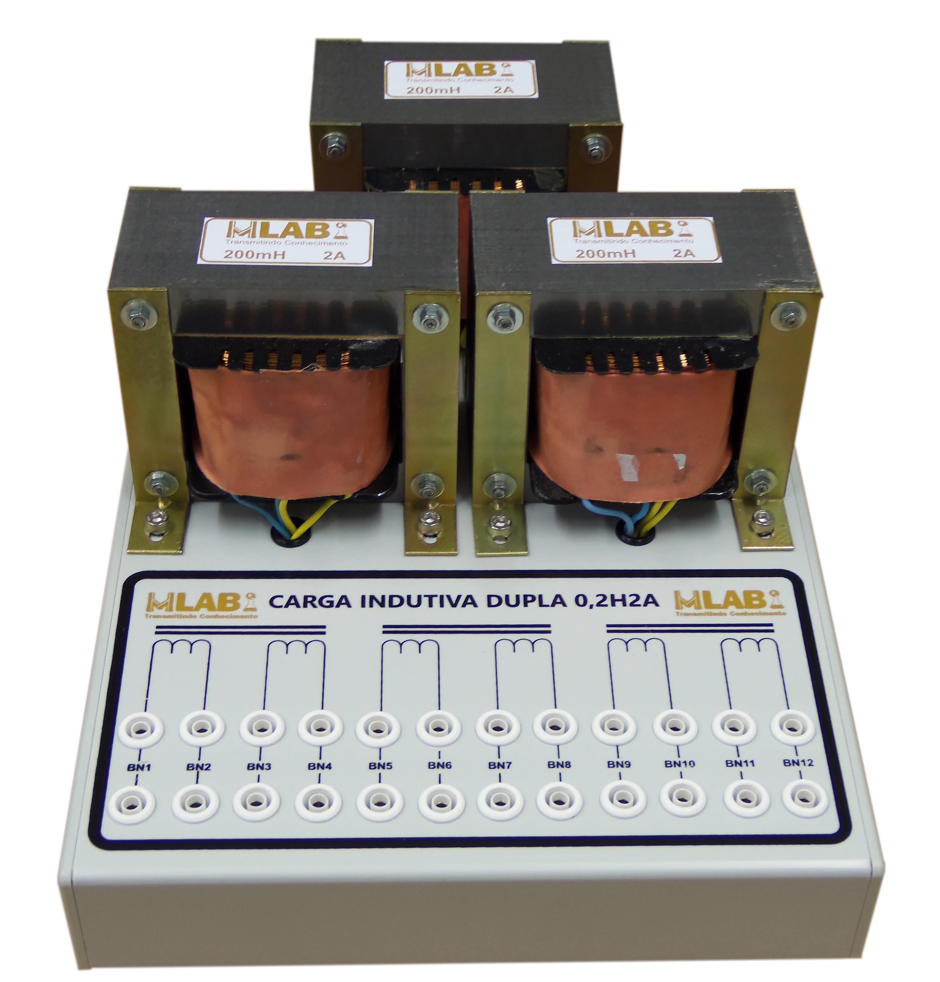 Equipamento possui 03 indutores, para que aluno conheça como funciona fator de potência ou corrente, em ligações trifásicas ou monofásicas.